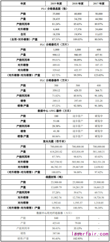 2019年,仕佳光子PLC分路器芯片系列產(chǎn)品——PLC分路器晶圓、PLC分路器芯片、PLC分路器器件對外銷售數(shù)量全線下滑。室內(nèi)光纜、線纜材料產(chǎn)品銷售數(shù)量去年同樣走低。