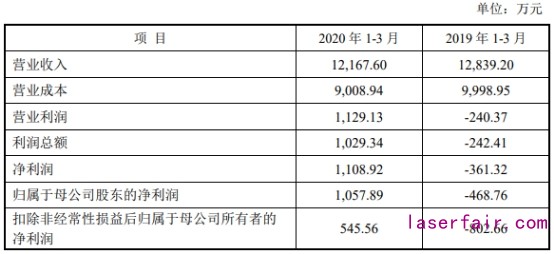2020年一季度,仕佳光子營業(yè)收入為1.22億元,去年同期為1.28億元;歸屬于母公司股東凈利潤為1057.89萬元,去年同期為-468.76萬元;扣除非經(jīng)常性損益后歸屬于母公司股東凈利潤為545.56萬元,去年同期為-802.66萬元;經(jīng)營活動(dòng)產(chǎn)生的現(xiàn)金流量凈額為1445.51萬元,去年同期為-904.06萬元。