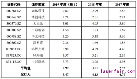 2017年-2019年,仕佳光子存貨周轉(zhuǎn)率分別為4.79、4.13、3.47,同行平均值分別為2.93、3.01、2.99。