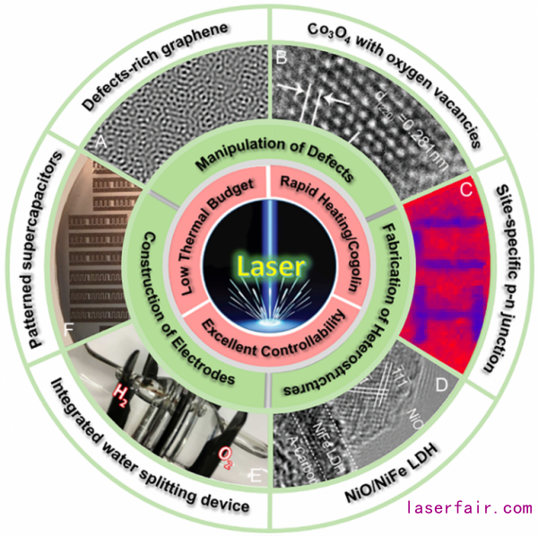 電極材料不同尺度的結(jié)構(gòu)特征對其電化學(xué)性能均具有顯著影響,如何實現(xiàn)在多個尺度下對電極材料進行可控調(diào)節(jié)是該領(lǐng)域關(guān)注的熱點。由于可實現(xiàn)在低功耗下快速、精準以及高度可控的材料加工,激光輻照技術(shù)近年來被廣泛用以制備和調(diào)控電極材料,并在缺陷可控引入、異質(zhì)結(jié)構(gòu)精準構(gòu)筑以及一體化電極原位制備等方面展現(xiàn)出獨特的優(yōu)勢。