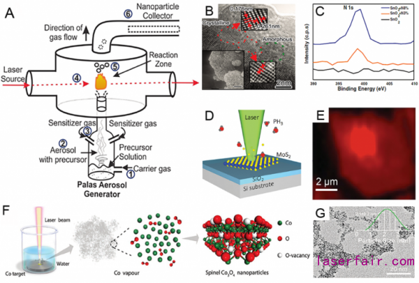 (F,G)激光誘導(dǎo)合成富含氧空位的Co3O4納米粒子。