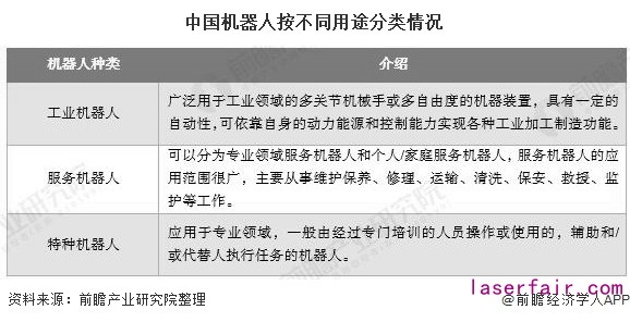 中國(guó)機(jī)器人按不同用途分類(lèi)情況