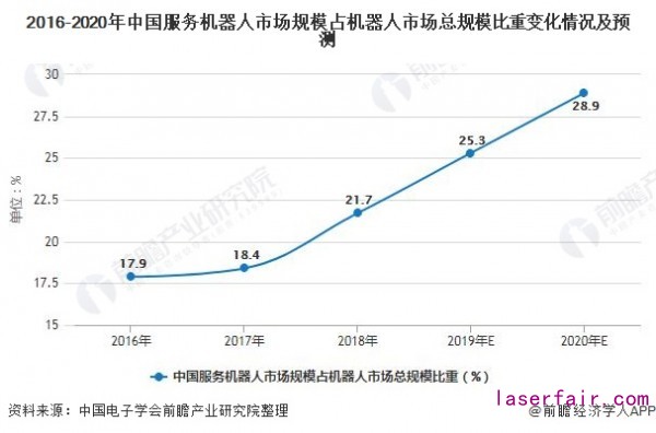 2016-2020年中國(guó)服務(wù)機(jī)器人市場(chǎng)規(guī)模占機(jī)器人市場(chǎng)總規(guī)模比重變化情況及預(yù)測(cè)