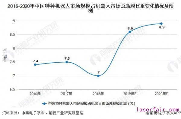 2016-2020年中國(guó)特種機(jī)器人市場(chǎng)規(guī)模占機(jī)器人市場(chǎng)總規(guī)模比重變化情況及預(yù)測(cè)