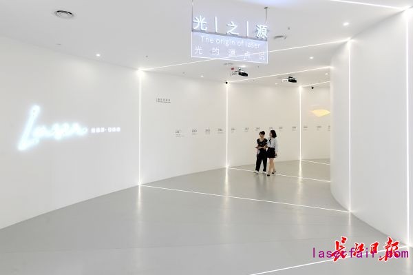 一條光影長(zhǎng)廊,它以時(shí)間軸的方式記錄了激光這100多年來(lái)的發(fā)展歷史。