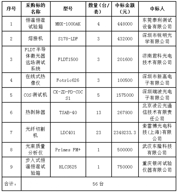 創(chuàng)鑫激光超高功率光纖激光器研發(fā)及產業(yè)化項目設備中標公告