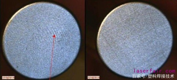 左圖箭頭指示區(qū)域有指紋,右圖是激光清洗后表面。