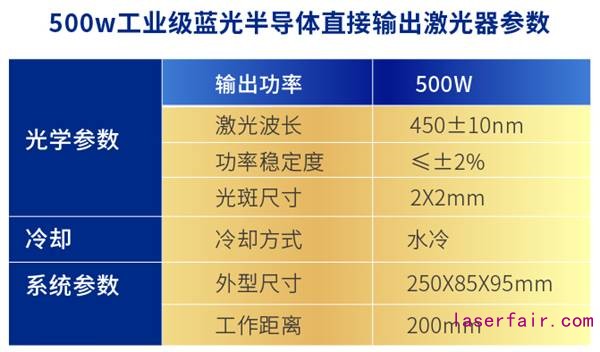 500w藍光激光器產(chǎn)品數(shù)據(jù):