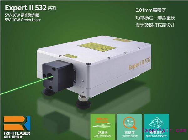在玻璃上打標LOGO、刻字,瑞豐恒推薦Expert Ⅱ 532系列水冷式綠光半導(dǎo)體泵浦脈沖固體激光器(功率范圍5W至10W)。Expert Ⅱ 532 綠光激光器重復(fù)頻率覆蓋范圍寬,單脈沖至200kHz;在所有頻率范圍內(nèi)都嚴格保證擁有優(yōu)越的光束質(zhì)量(M2<1.3)和完美光斑特性(光斑橢圓度>90 %),非常適合超精細打標;另外,綠光激光器的脈沖寬度<35ns@30k,加工時熱影響區(qū)域很小,不會出現(xiàn)燒焦、變形的情況; 而獨特的調(diào)Q控制技術(shù),適合各種激光應(yīng)用控制需求;采用全數(shù)字智能電源控制技術(shù),操作簡單、方便遠程監(jiān)控。
