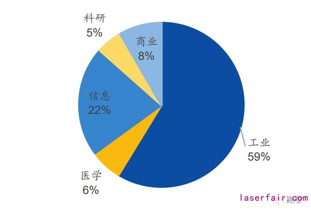 2019 年中國工業(yè)領(lǐng)域激光設(shè)備銷售收入 386.6 億元,為占比最高的應(yīng)用領(lǐng)域,占比接近 60%,但 2019 年工業(yè)領(lǐng)域增速僅 1.95%。商業(yè)領(lǐng)域銷售收入新增 15.2 億元,同比增長 38.38%,為增速最快的應(yīng)用領(lǐng)域。