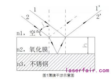 在合適的激光能量作用下,不銹鋼表面會(huì)形成一層無(wú)色透明的氧化物薄膜,這層薄膜會(huì)產(chǎn)生光干涉現(xiàn)象。