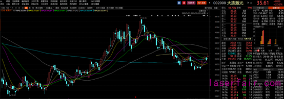 今日大盤表現(xiàn)較為低迷,而白馬股大族激光卻逆勢上漲,漲幅一度超4%,截至收盤收漲2.56%,收盤價35.6元/股。