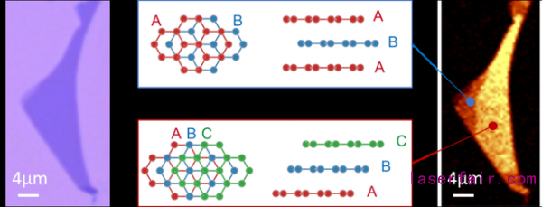 針對上述問題,國防科技大學(xué)聯(lián)合國內(nèi)外多家科研單位開展合作,首次在機(jī)械解離的三層石墨烯中實(shí)現(xiàn)了由激光輻照誘導(dǎo)的從ABC堆垛到ABA堆垛的有序結(jié)構(gòu)相變。實(shí)驗(yàn)結(jié)合共聚焦拉曼光譜顯微鏡、光學(xué)二次諧波和掃描近場光學(xué)顯微鏡等手段詳細(xì)研究了相變前后石墨烯的晶體結(jié)構(gòu)和光學(xué)特性。