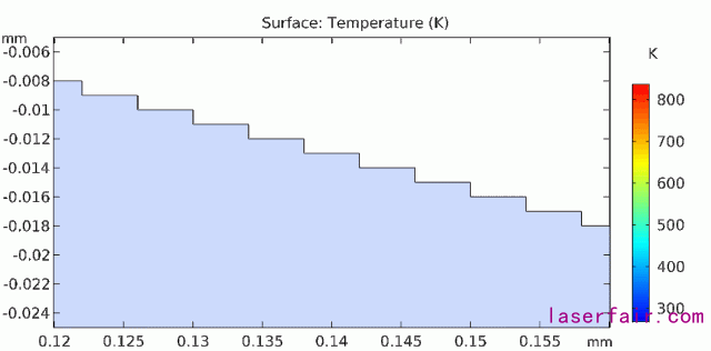 采用CO2激光進行激光輻照熔融硅時的2D數(shù)值模擬圖