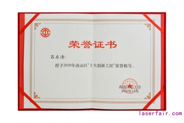 大族激光首席技術(shù)官呂啟濤博士榮獲2020年南山區(qū)“十大創(chuàng)新工匠”榮譽(yù)