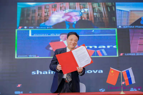 除了對話活動,雙方合作又續(xù)新篇章。通過視頻連線的方式,大會促成兩大合作協(xié)議在線上簽署。在現(xiàn)場參會人員的見證下,武漢激源技術(shù)服務(wù)有限公司朱耘與白俄羅斯普鐳納集團公司阿瓦科夫簽訂了光刻機項目;華工科技大學激光加工國家工程中心主任、武漢·中國光谷激光行業(yè)會會長朱曉與國際科技組織俄羅斯激光協(xié)會會長科福仕教授簽訂了《中俄激光領(lǐng)域戰(zhàn)略合作延續(xù)協(xié)議》。