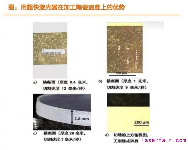其他激光微加工:藍寶石和陶瓷是普遍應(yīng)用于微加工技術(shù)和精細加工的材料,然后由于其質(zhì)地堅硬, 對熱敏感,傳統(tǒng)制造工藝很難完成,需要通過超快激光器進行微加工處理。