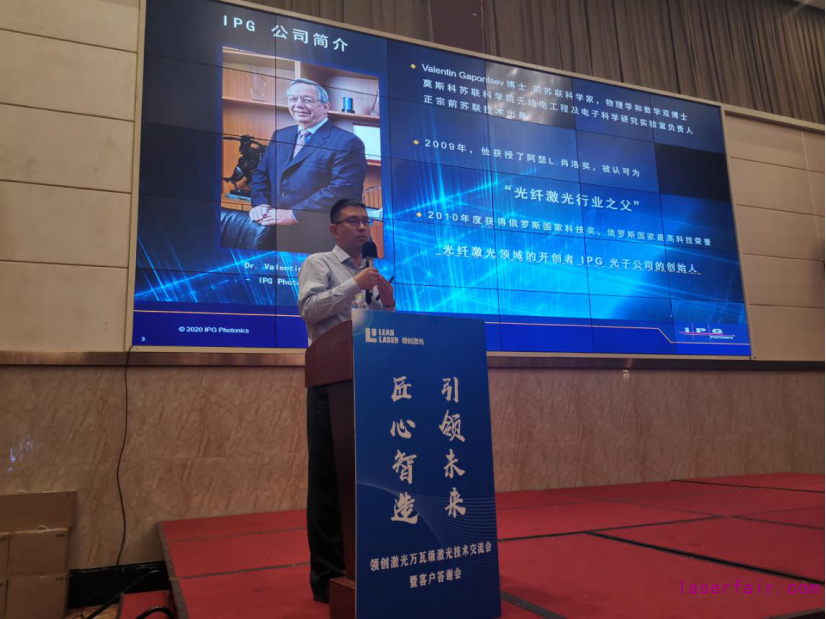 領(lǐng)創(chuàng)激光戰(zhàn)略合作伙伴,全球領(lǐng)先的激光器制造商阿帕奇(北京)光纖激光技術(shù)有限公司市場(chǎng)部于宇先生給做了關(guān)于 IPG 激光器產(chǎn)品的最新技術(shù)介紹。