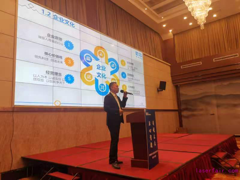領(lǐng)創(chuàng)激光華中西南區(qū)域銷(xiāo)售總監(jiān)湯文彬先生介紹領(lǐng)創(chuàng)激光的發(fā)展情況和最新的產(chǎn)品技術(shù)。