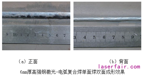 激光-電弧復合焊具有焊縫熔深大,焊接速度快,焊接效率高,焊接電弧穩(wěn)定,熱源能量集中,焊接熱輸入低,焊接變形小,易于實現(xiàn)單面焊雙面成形等優(yōu)點。在焊接條件相同的情況下,與傳統(tǒng)弧焊相比,激光-電弧復合焊的電弧穩(wěn)定性更強,尤其高速焊接條件下,傳統(tǒng)電弧焊的焊接電流、電壓波形已經(jīng)非常不穩(wěn)定,而激光-電弧復合焊的電流、電壓波形仍然非常穩(wěn)定。不僅如此,激光-電弧復合焊接還可以客服激光焊對工件坡口裝配要求高、高反射率材料(如鋁、銅等)的能量損失大、不填充材料焊接某些高性能金屬材料時易產(chǎn)生冷裂紋或熱裂紋等缺點。