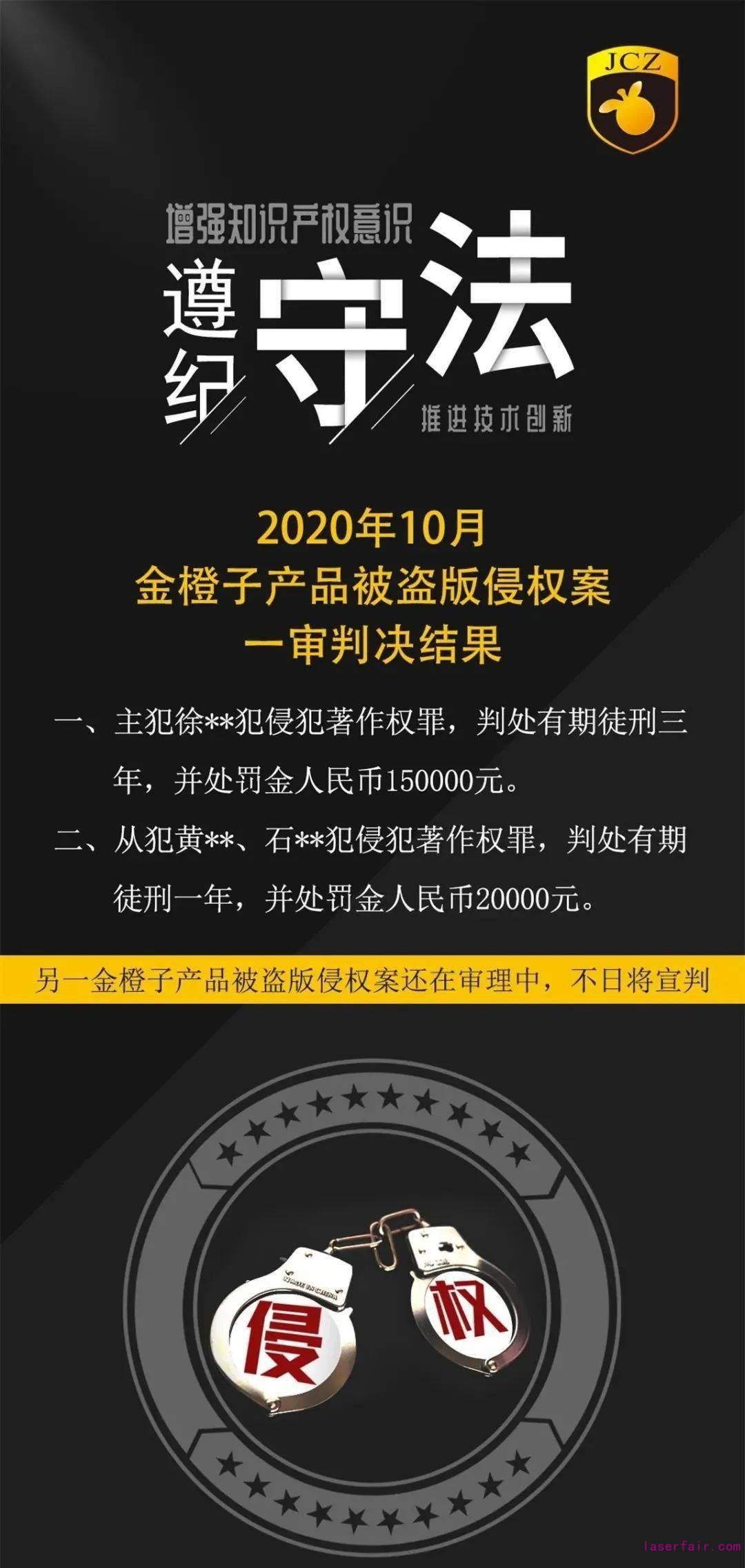 金橙子科技將配合執(zhí)法機關(guān)對侵權(quán)行為進行持續(xù)不斷的打擊。與圈內(nèi)的同仁朋友們攜手共進,抵制不良違法行為,在公平公正的良性循環(huán)中建設(shè)激光產(chǎn)業(yè)的美好家園。