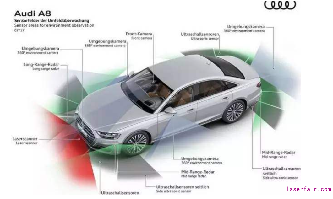 時(shí)下,激光雷達(dá)主要有兩個(gè)市場(chǎng):測(cè)試市場(chǎng)以及量產(chǎn)車市場(chǎng)。測(cè)試市場(chǎng)主要覆蓋Robotaxi、無(wú)人小車、接駁車之類,這部分市場(chǎng)由于規(guī)模有限,可以不考慮成本,使用更高精度的激光雷達(dá)。但這部分市場(chǎng)可以貢獻(xiàn)的銷量以及產(chǎn)生的利潤(rùn)是遠(yuǎn)遠(yuǎn)沒(méi)有辦法支撐像Velodyne這樣的單一靠激光雷達(dá)營(yíng)生的公司的日常運(yùn)營(yíng)。像百度阿波羅,目前都在采用國(guó)產(chǎn)的激光雷達(dá)解決方案,其售價(jià)遠(yuǎn)遠(yuǎn)低于Velodyne(VLDR.US)這樣公司的產(chǎn)品價(jià)格。而要打開(kāi)量產(chǎn)車市場(chǎng),為L(zhǎng)2+/L3級(jí)無(wú)人駕駛技術(shù)準(zhǔn)備的激光雷達(dá),最大的制約就是成本。以法雷奧為奧迪旗艦轎車奧迪A8提供的四線激光雷達(dá)為例,就足見(jiàn)這已經(jīng)是目前量產(chǎn)乘用車可以負(fù)擔(dān)得起得激光雷達(dá)的價(jià)格上限了。