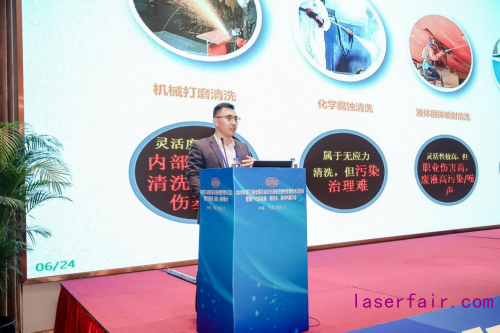 圣同智能激光裝備集團(tuán)作為一家高新技術(shù)企業(yè)代表,在此次大會(huì)中由銷(xiāo)售總監(jiān):黃致博先生分享了本企業(yè)自主研發(fā)生產(chǎn)的激光清洗設(shè)備工作原理和優(yōu)勢(shì),同時(shí)也分享了旗下的產(chǎn)品:激光清洗系列、激光除銹系列、激光去涂層系列、激光去油污系列、激光文物修復(fù)系列、激光去膠層系列、激光去鍍層系列、激光清洗自動(dòng)化的解決方案和應(yīng)用領(lǐng)域。