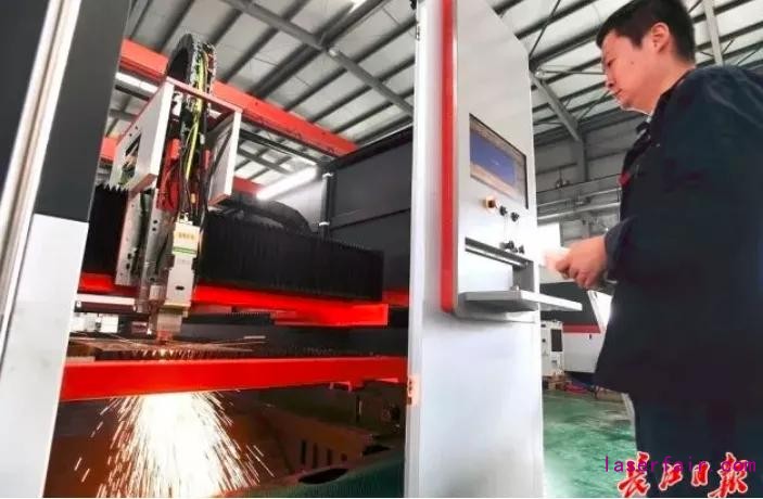 華工科技智能制造裝備產(chǎn)業(yè)園,技術(shù)人員在激光切割機(jī)生產(chǎn)線上進(jìn)行激光切割。記者高勇 攝