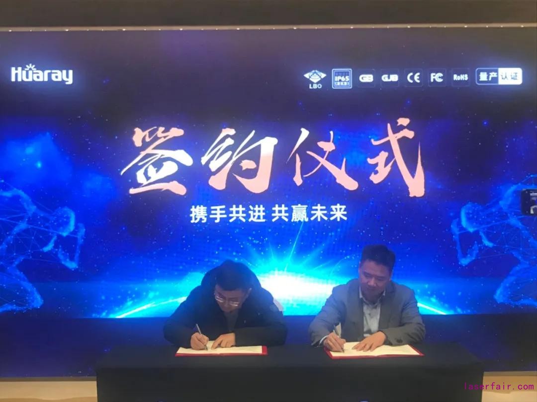 左為天弘激光金朝龍董事長,右為閔大勇董事長