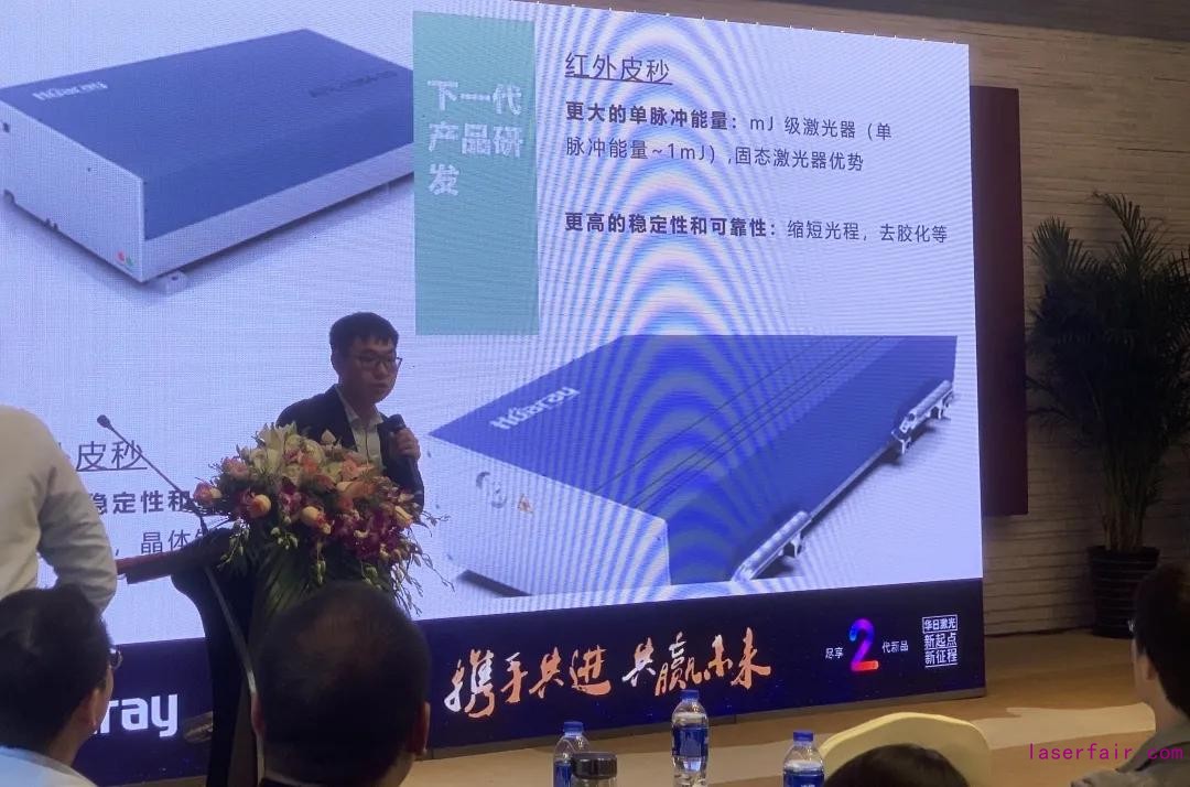 隨后,華日納秒產(chǎn)品技術(shù)總監(jiān)黃庭瑞博士、皮秒產(chǎn)品線技術(shù)總監(jiān)徐開偉、飛秒產(chǎn)品線總監(jiān)邵國棟博士對新產(chǎn)品做了精彩的講解。