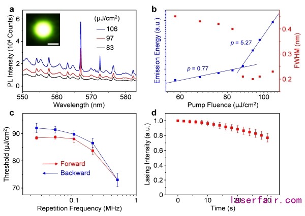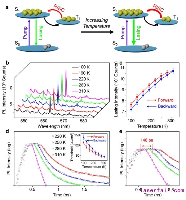 圖2.熱活化激光機制實現(xiàn)有機準(zhǔn)連續(xù)激光