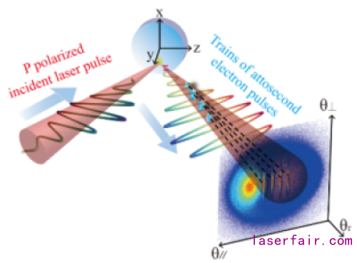 光子與電子相互作用是自由電子激光、阿秒科學(xué)和物質(zhì)科學(xué)的前沿問題之一。超快電子學(xué)研究目前已達(dá)到飛秒(fs, 10-15秒)量級時間分辨率,并在超快電子顯微鏡、超快條紋相機和自由電子激光方面取得豐碩進(jìn)展,但是原子、分子和凝聚態(tài)物質(zhì)內(nèi)部的動力學(xué)研究需要亞飛秒甚至阿秒(as, 10-18秒)時間分辨率。通過飛秒光場直接度量電子的亞周期動力學(xué)特性,可以提供前所未有的阿秒級時間分辨率,但飛秒激光脈沖與阿秒電子脈沖難以實現(xiàn)高精度時空同步。