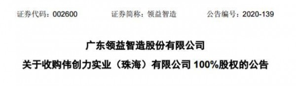 據(jù)IT之家報(bào)道,廣東領(lǐng)益智造22日發(fā)布公告稱,公司將以3.68億元收購珠海偉創(chuàng)力100% 股權(quán)。通過本次收購,將擁有珠海偉創(chuàng)力的土地和廠房等資產(chǎn)。