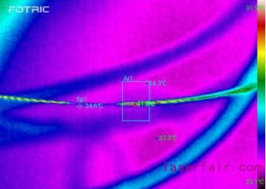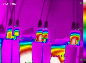 光纖會(huì)吸收部分激光能量引發(fā)溫升,溫度過高會(huì)加速老化,導(dǎo)致溫度高→老化加快→溫度更高的惡性循環(huán),降低激光器的可靠性和使用壽命,因此需使用紅外熱像儀檢測整段光纖,尤其是光纖熔接點(diǎn)溫度。
