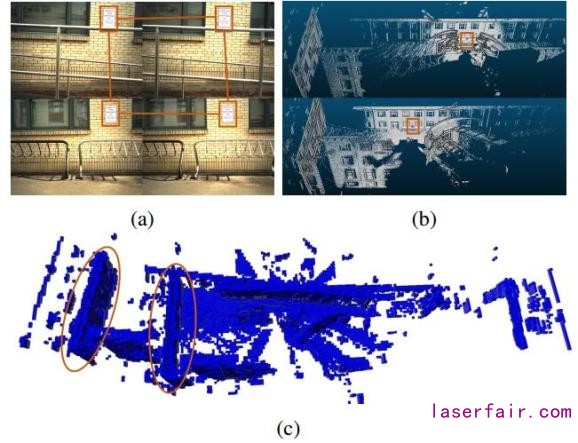 2) 激光雷達(dá)數(shù)據(jù)被用來排除無效的圖像匹配,進(jìn)一步加強(qiáng)了方案的可靠性。