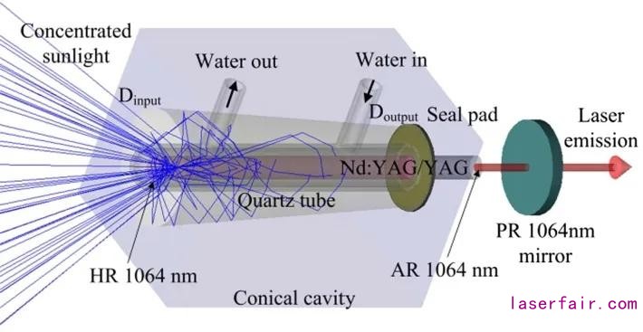 圖2 采用太陽光泵浦Cr,Nd: YAG透明陶瓷提升輸出功率示意圖