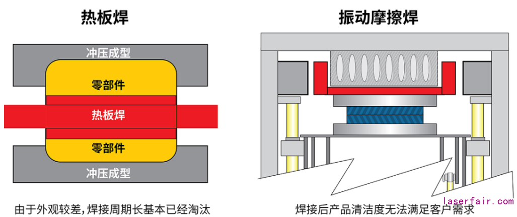 濾油器焊接工藝一般分為四種:熱板焊、振動摩擦焊、紅外預加熱振動摩擦焊以及激光焊。無論從生產(chǎn)周期還是產(chǎn)品美觀度,激光焊都將成為以后濾油器焊接的趨勢。