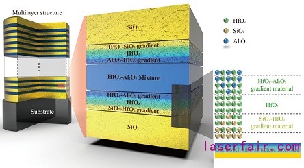 為此,研究人員提出了基于混合膜層和類三明治結(jié)構(gòu)界面的二向色鏡(MDLM)設計新方法并進行了實驗驗證。采用HfO2和Al2O3的混合材料作為折射率和光學帶隙可調(diào)諧的高折射率膜層,采用SiO2作為低折射率膜層,高、低折射率膜層之間采用類三明治結(jié)構(gòu)的梯度界面取代傳統(tǒng)的離散界面。該MDLM設計二向色鏡表現(xiàn)出優(yōu)良的光譜性能,具有比TDLM更好的力學性能、更低的吸收和更高的抗激光損傷閾值。在532納米的激光損傷閾值和1064納米的激光損傷閾值均提升了近一倍。