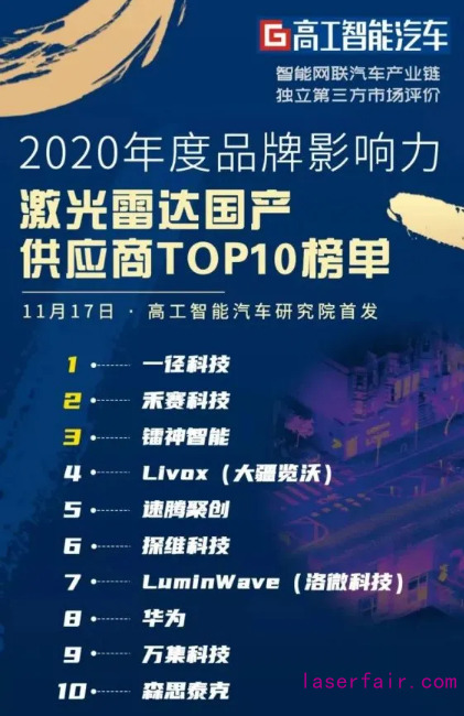 國產(chǎn)激光雷達(dá)供應(yīng)商品牌影響力Top 10