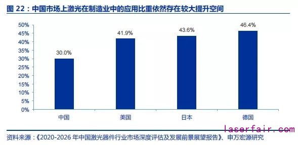 (二)激光滲透率擴(kuò)張:中國制造業(yè)激光應(yīng)用率與發(fā)達(dá)國家仍有差距,激光行業(yè)滲透率提升空間廣闊