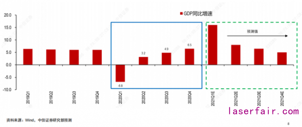 2021年經(jīng)濟運行將逐步向常態(tài)化回歸。Q1GDP同比增速預計在15%左右,后三個季度增速蘇逐漸回歸正常水平
