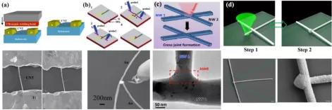 超快激光由于極短的脈寬和極高的脈沖能量密度,可在較低的平均激光功率下實(shí)現(xiàn)納連接。同時(shí)結(jié)合等離子激元對能量的重分布特征,使低損傷高效同/異質(zhì)納米線結(jié)構(gòu)互連成為可能,推動(dòng)了新型納米材料在微納電子器件中的高性能制造與應(yīng)用。