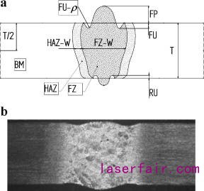 (b)典型橫截面的宏觀圖(1.2kW,42mm / s的焊縫)