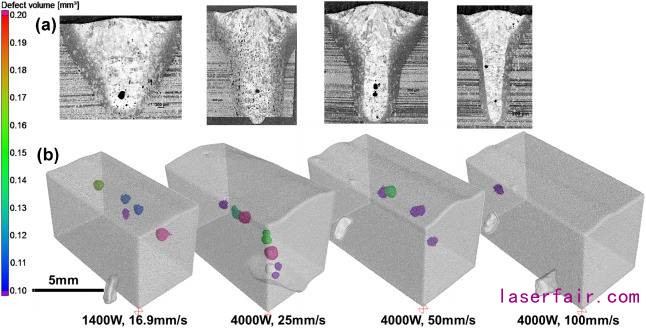 該研究認(rèn)為,匙孔激光焊接時(shí),氣孔可能是匙孔后面流體湍流的結(jié)果,相關(guān)的雷諾數(shù)越大,氣孔形成的可能性就越高。對(duì)于這種流體流動(dòng)控制的氣孔,降低匙孔附近流體流動(dòng)的雷諾數(shù),可以有效地減少或避免氣孔。