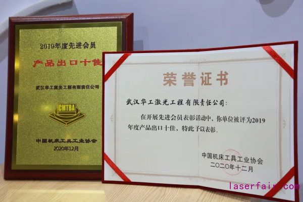 在同期舉辦的2019年度中國機床工具工業(yè)協(xié)會先進會員(十佳)評選活動中,根據(jù)企業(yè)年報數(shù)據(jù)、專家資料審核以及用戶應用情況審核等綜合評審,華工激光榮獲“產(chǎn)品出口十佳”稱號。