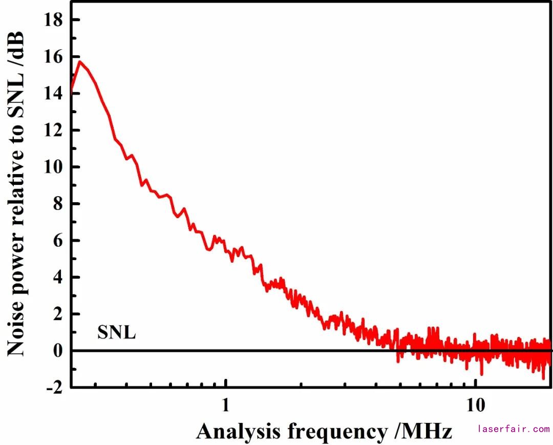 圖4 連續(xù)波單頻1.5 μm激光的強度噪聲譜