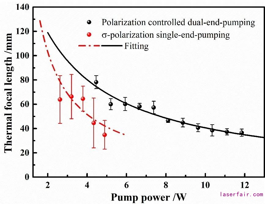 圖2 藍寶石-Er,Yb:YAB-藍寶石薄片的熱透鏡焦距