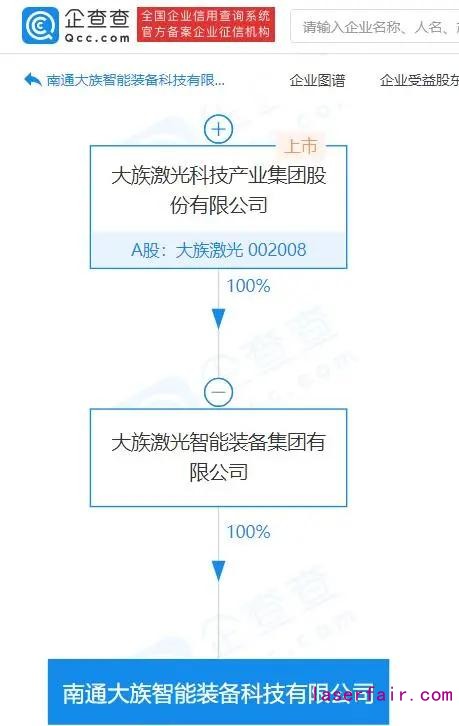 企查查股權(quán)穿透顯示,該公司由大族激光全資子公司大族激光智能裝備集團(tuán)有限公司100%控股。
