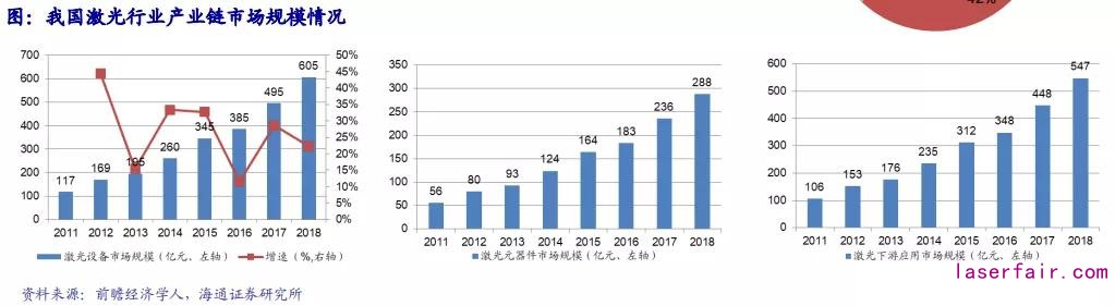 國(guó)內(nèi)激光市場(chǎng)快速增長(zhǎng),上、中、下游市場(chǎng)規(guī)模1:2:2