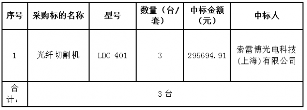 超高功率光纖激光器研發(fā)及產(chǎn)業(yè)化項(xiàng)目設(shè)備中標(biāo)公告文件編號(hào):I(CG)字第210322001號(hào)1、項(xiàng)目名稱:超高功率光纖激光器研發(fā)及產(chǎn)業(yè)化項(xiàng)目2、招標(biāo)單位:深圳市創(chuàng)鑫激光股份有限...